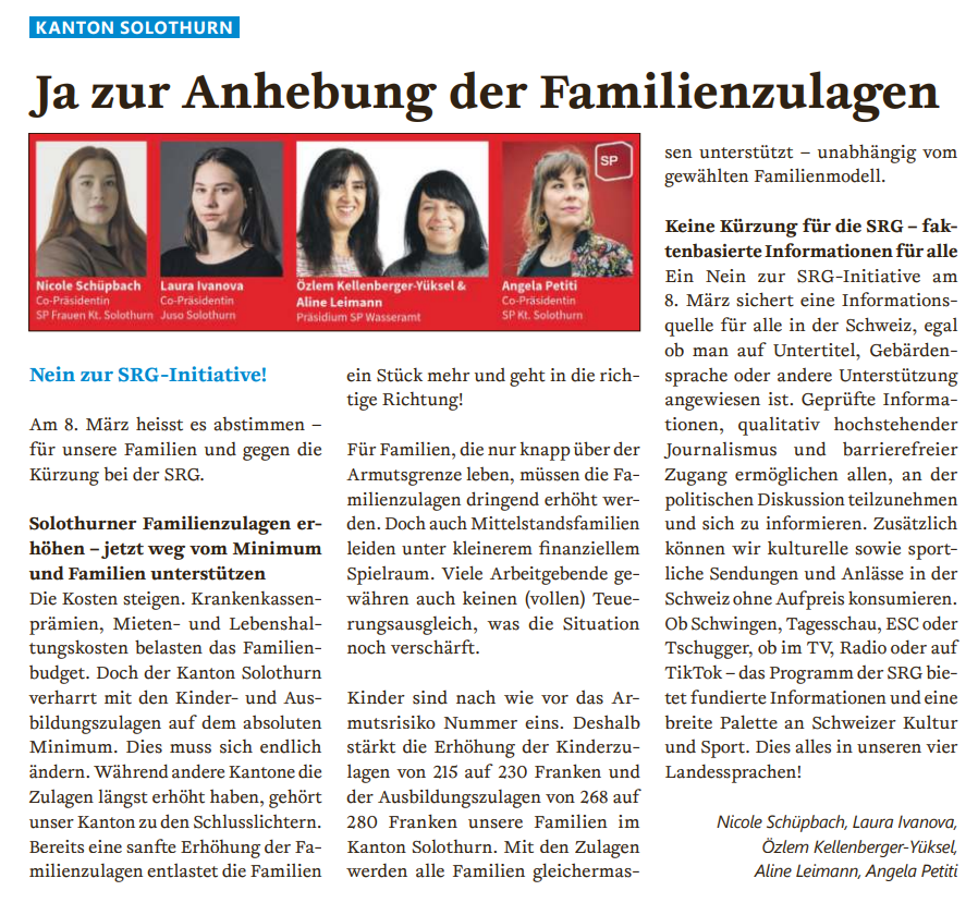 Solothurner Familienzulagen erhöhen – jetzt weg vom Minimum und Familien unterstützen