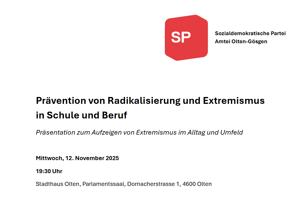 Eine Präsentation zum Aufzeigen von Extremismus im Alltag und Umfeld, organisiert von der SP Amtei Olten-Gösgen